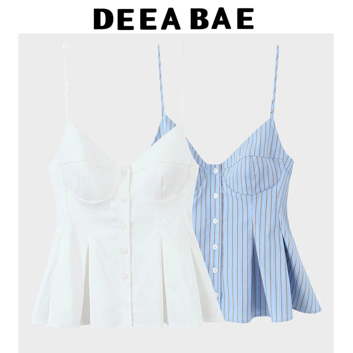 Korean Style Contrast Striped Vest Slim Fit Single-breasted Outer Wear Layered Top