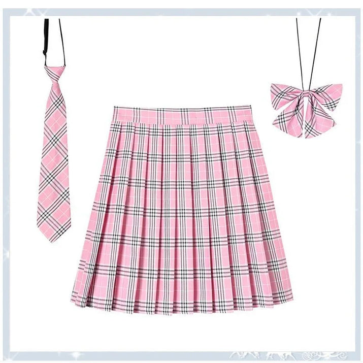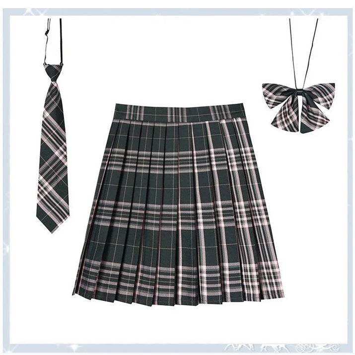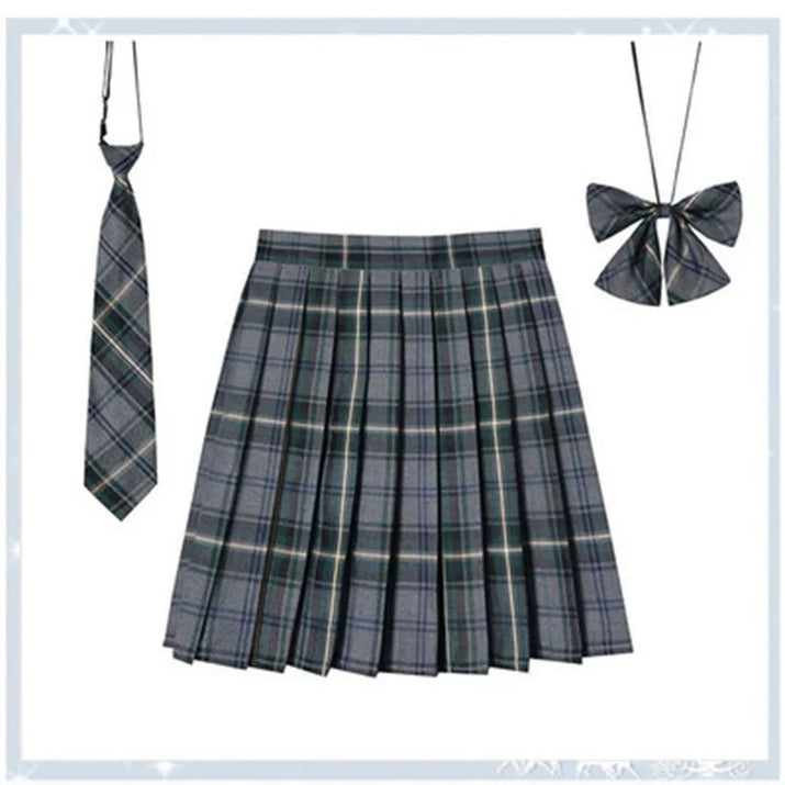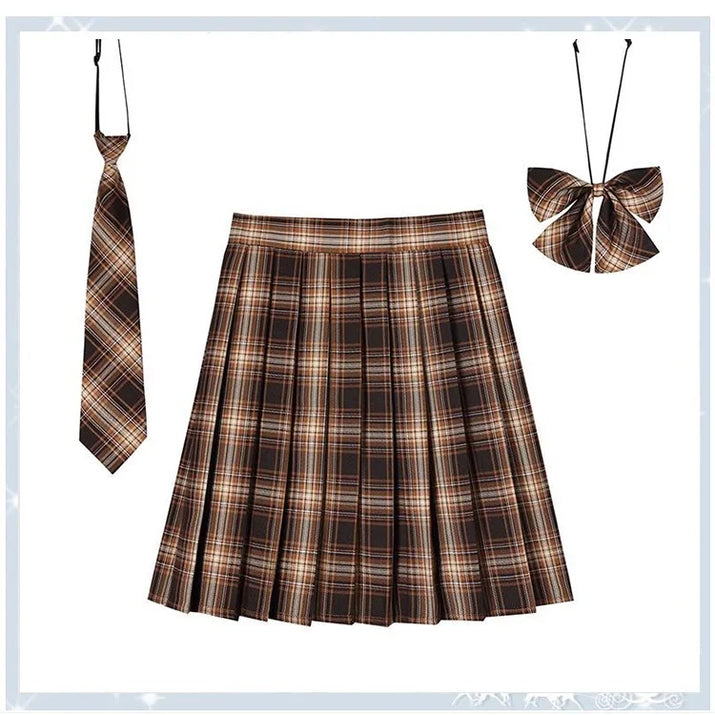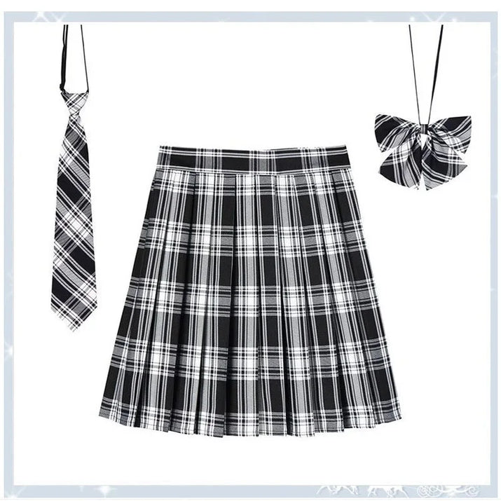 Women Plaid Pleat Skirt With Necktie Bowtie Harajuku Preppy Mini Japanese School